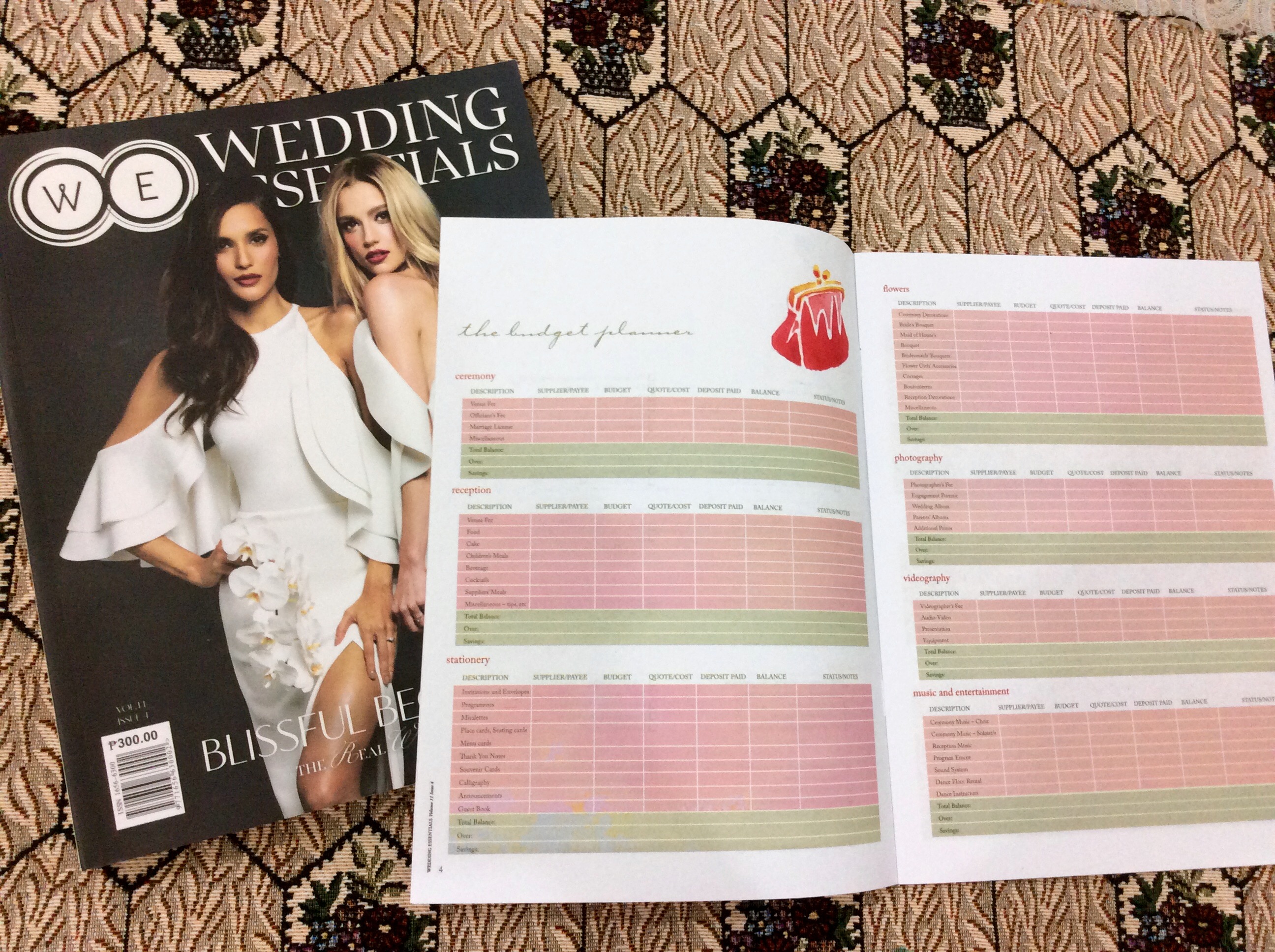 When I went back to Manila, one of the things that I kept in mind was to buy myself a wedding planner journal. I went to 3 big known bookstores but didn’t find any. When I went to the Wedding Library shop in SM North, I found wedding magazines hanging on their stands and asked the sales person if they have a wedding planner journal. And..they said none. So when I was browsing their magazines I saw this new copy of Wedding Essentials and simply just bought one for myself, thinking the visuals featured would be of help. When I went home, I was surprised to find this baby inside! And yes.. I was thrilled. I know its easy to just download and print checklists from online sources but I’m still an old soul and I find happiness in having one. I’m not promoting the magazine but if you’re like me who still prefer to keep track of your wedding preps especially the budget part and checklists of suppliers by writing down on paper (the conventional way) then this baby is good for you.